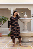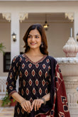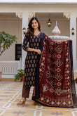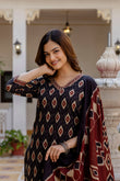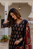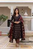 Black, Maroon & Beige Printed Kurta with Trousers & Dupatta