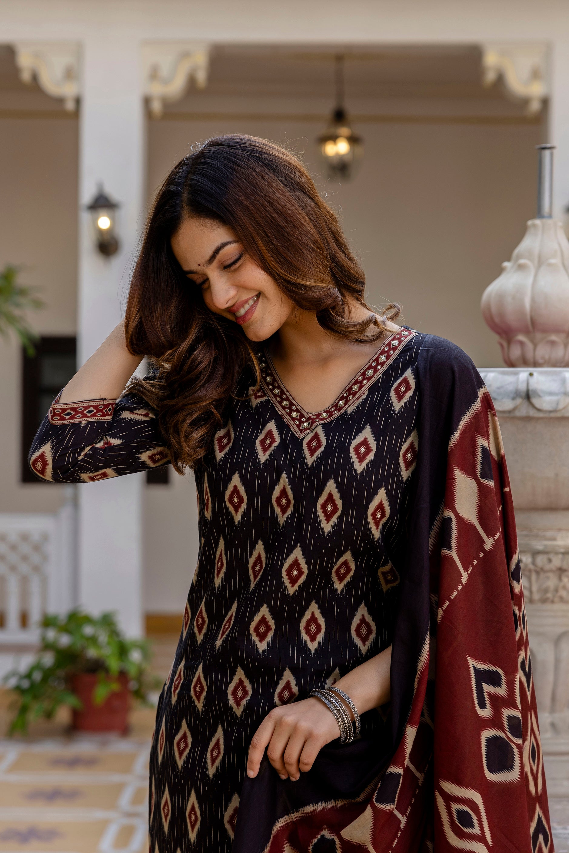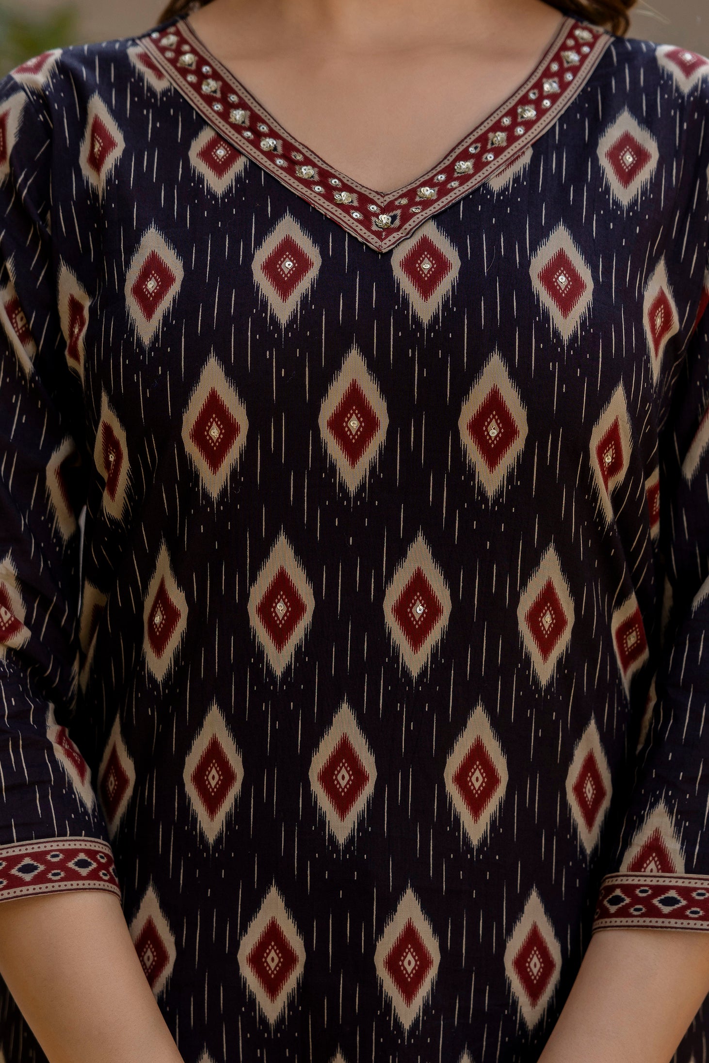- Geometric Ikat printed pattern